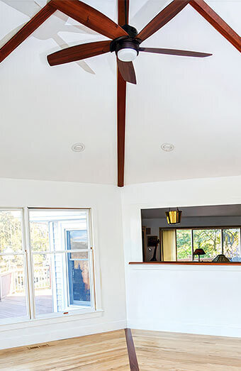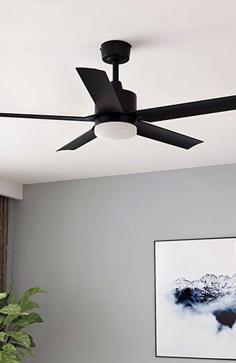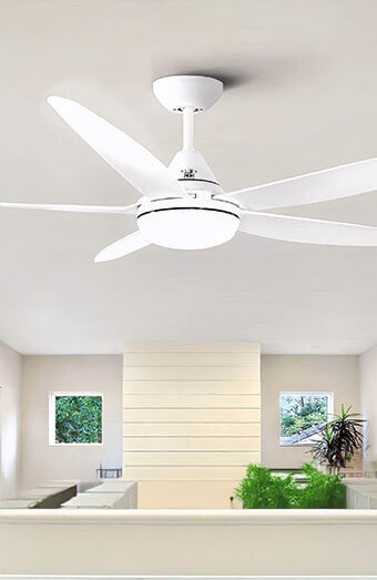 Installation of premium DC motor ceiling fans that operate silently while using up to 70% less electricity than traditional AC motor fans.